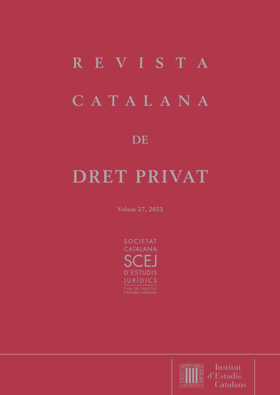 Els continguts del REVISTA CATALANA DE DRET PRIVAT estan subjectes —llevat que s’indiqui el contrari en el text o en el material gràfic— a una llicència Reconeixement - No comercial - Sense obres derivades 3.0 Espanya (by-nc-nd) de Creative Commons, el text complet de la qual es pot consultar a https://creativecommons.org/licenses/by-nc-nd/3.0/es/deed.ca. Així doncs, s’autoritza el públic en general a reproduir, distribuir i comunicar l’obra sempre que se’n reconegui l’autoria i l’entitat que la publica i no se’n faci un ús comercial ni cap obra derivada.